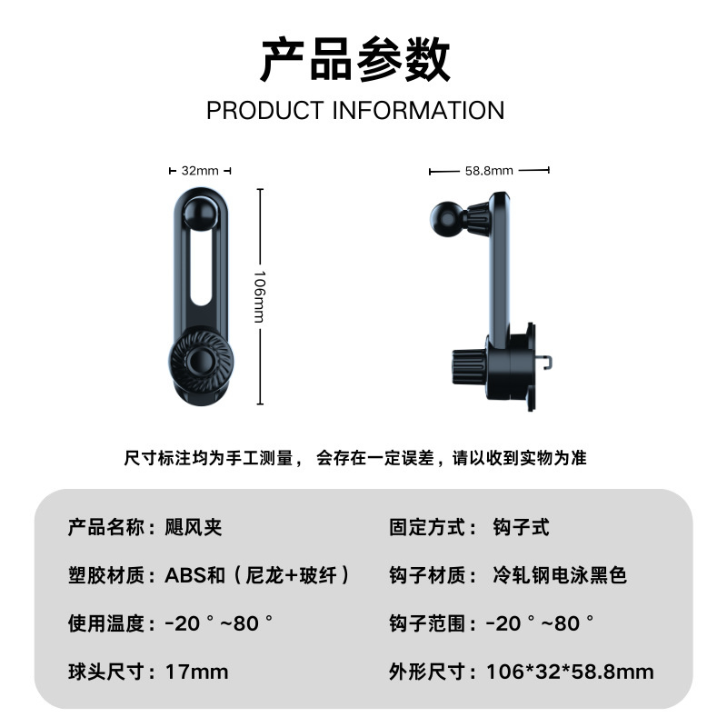 车载手机支架底座改装 飓风夹 配件导航固定支撑出风口金属挂钩