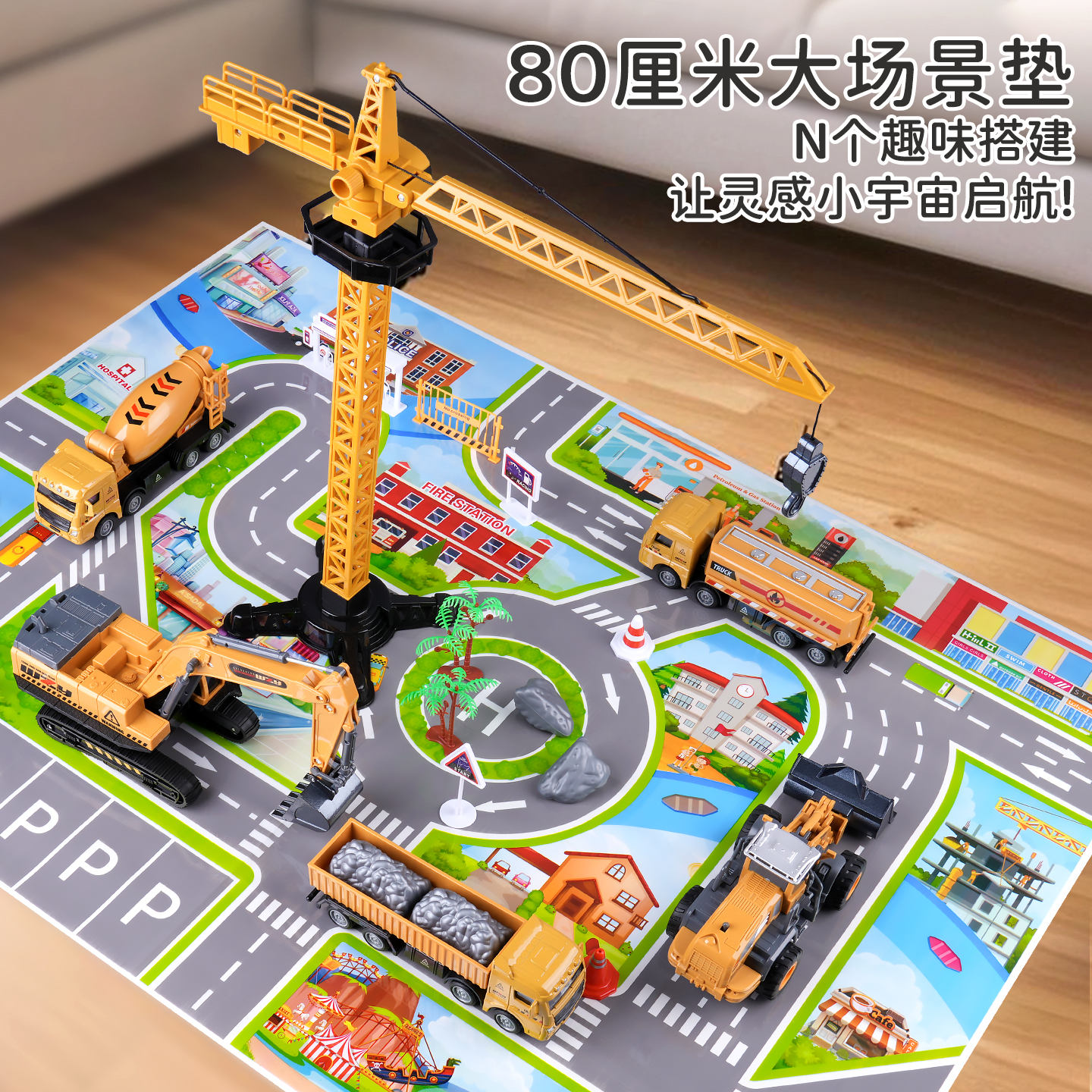 合金挖掘机玩具车儿童玩具男孩工程车套装 推土勾机吊车搅拌小汽车