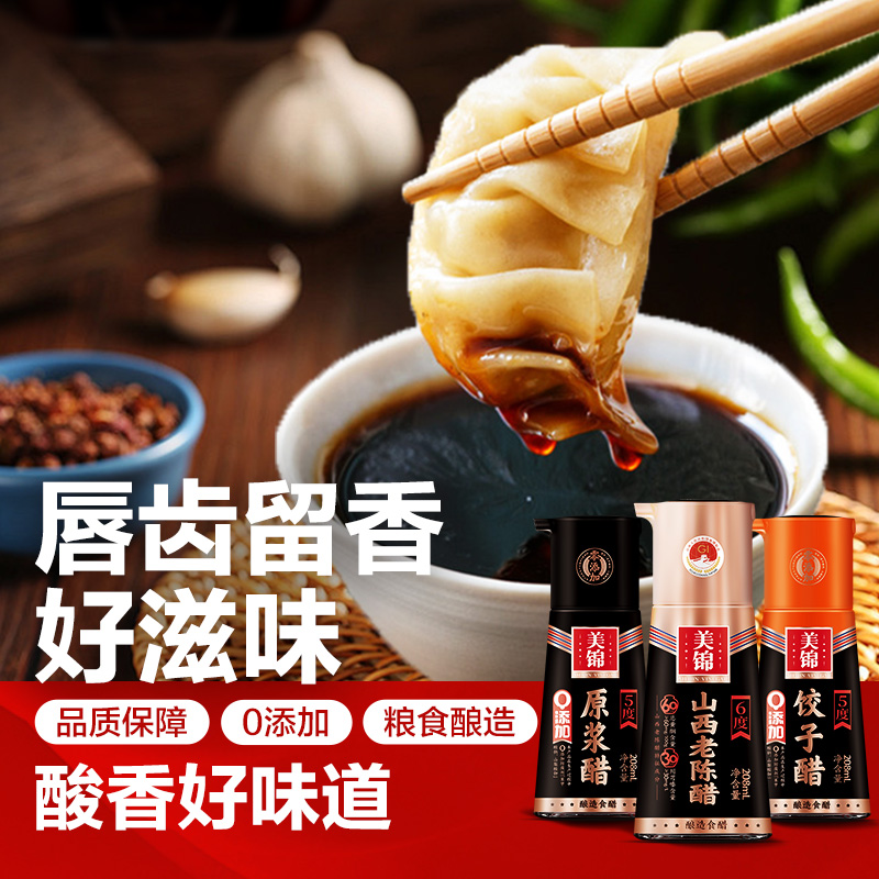 美锦老陈醋经典 3瓶山西老陈醋原浆醋饺子醋桌上瓶 餐桌醋208ml