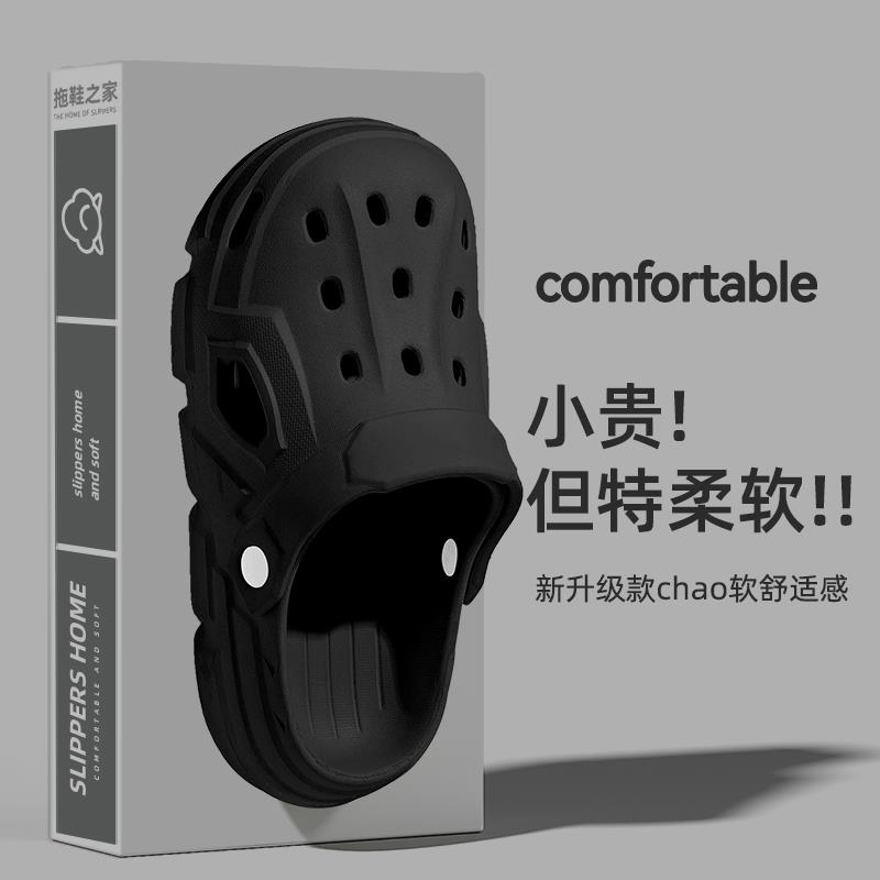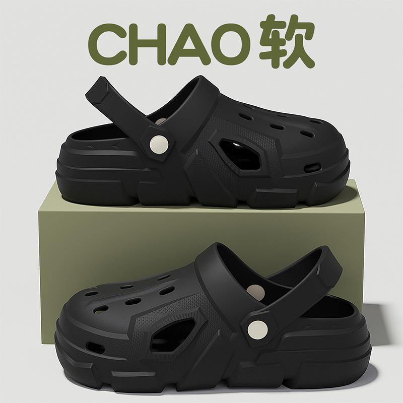 外穿2025新款 夏季 厚底耐磨防滑防臭海边沙滩包头凉拖男 男款 洞洞鞋