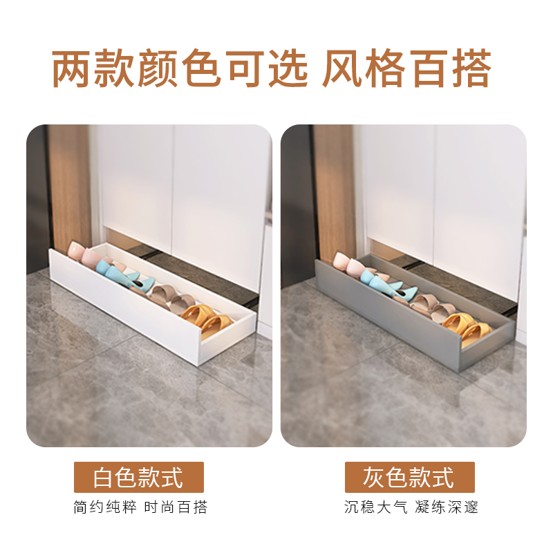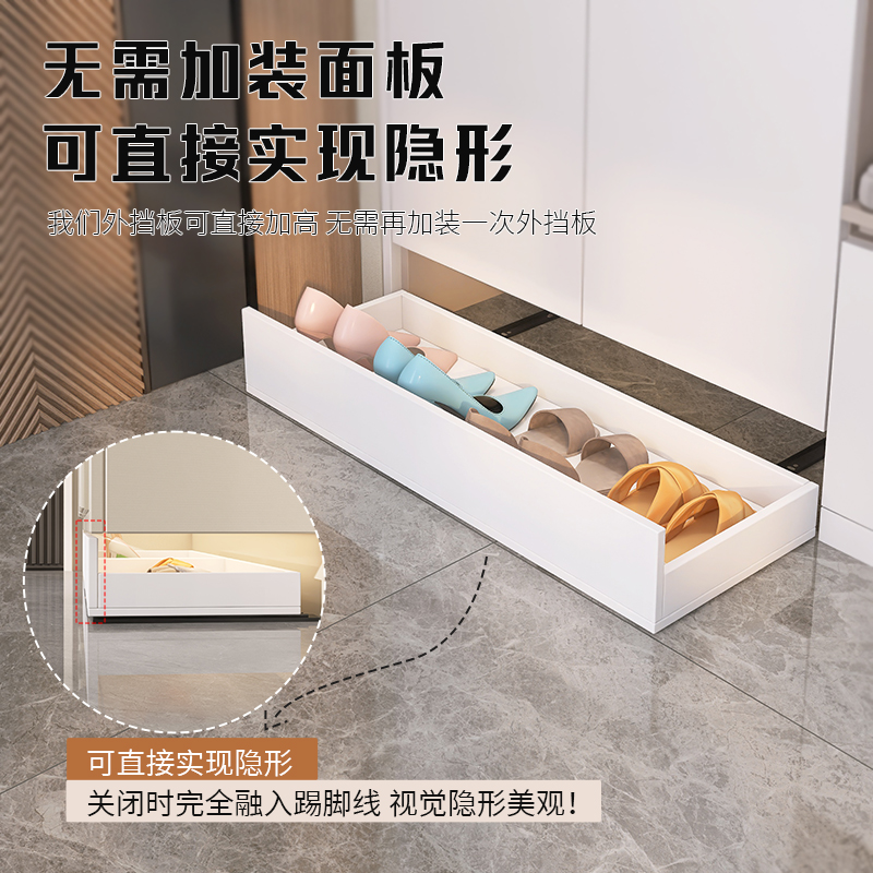 收纳反弹抽 子抽拉式 踢脚抽屉滑轮轨道托盘抽入户鞋 柜下方放鞋