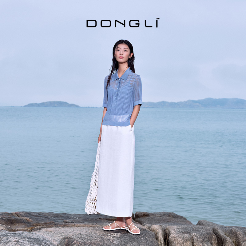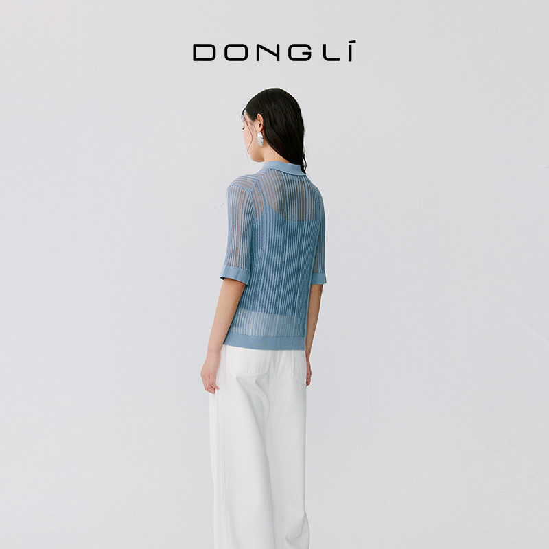 丝绒镂空POLO女轻薄抽条短袖 东黎温柔 夏季 波光透影 5207 海风
