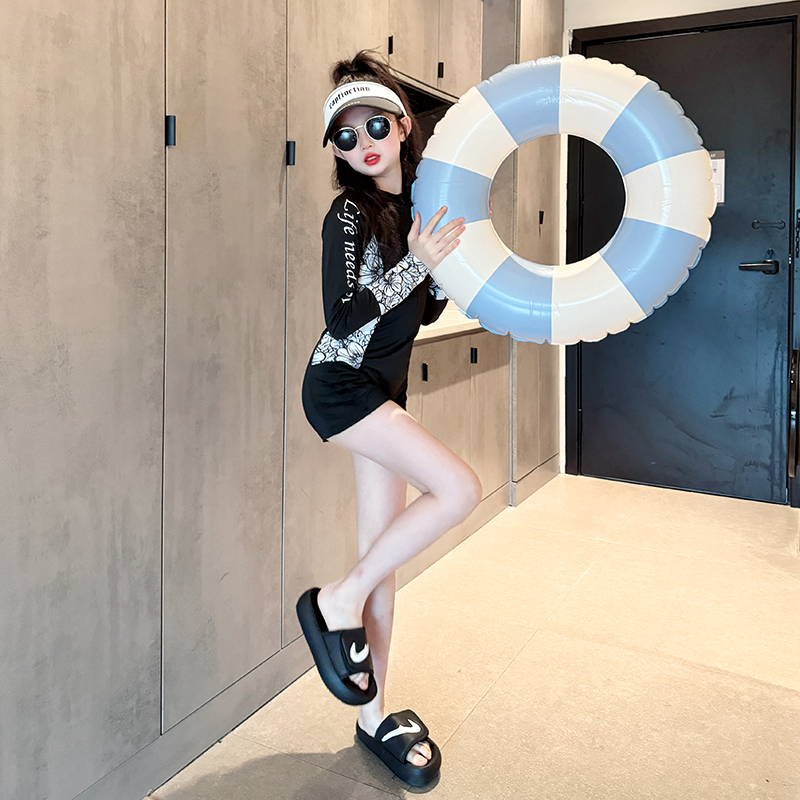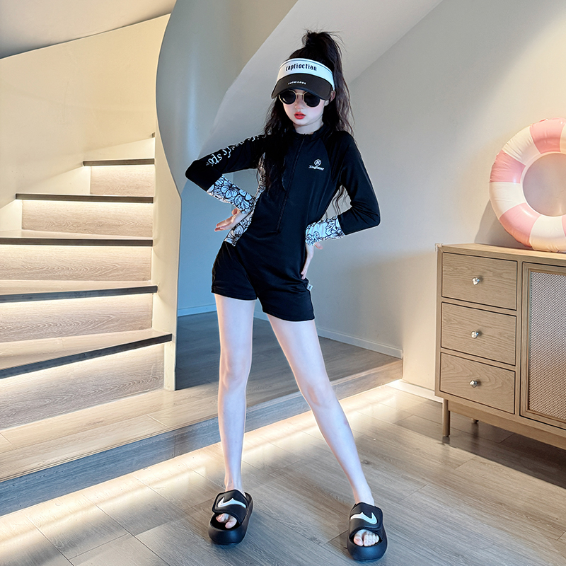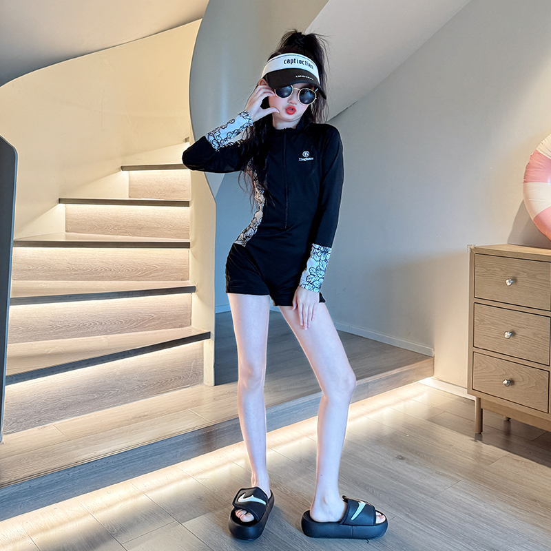 泳装 儿童连体长袖 大童女孩网红高颜值游泳衣 2025新款 女童泳衣夏季