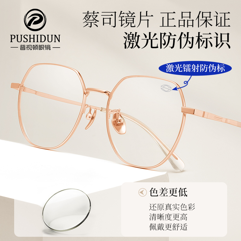 多边形近视眼镜框女款 定制可配有度数散光超轻纯钛合金细框眼睛架