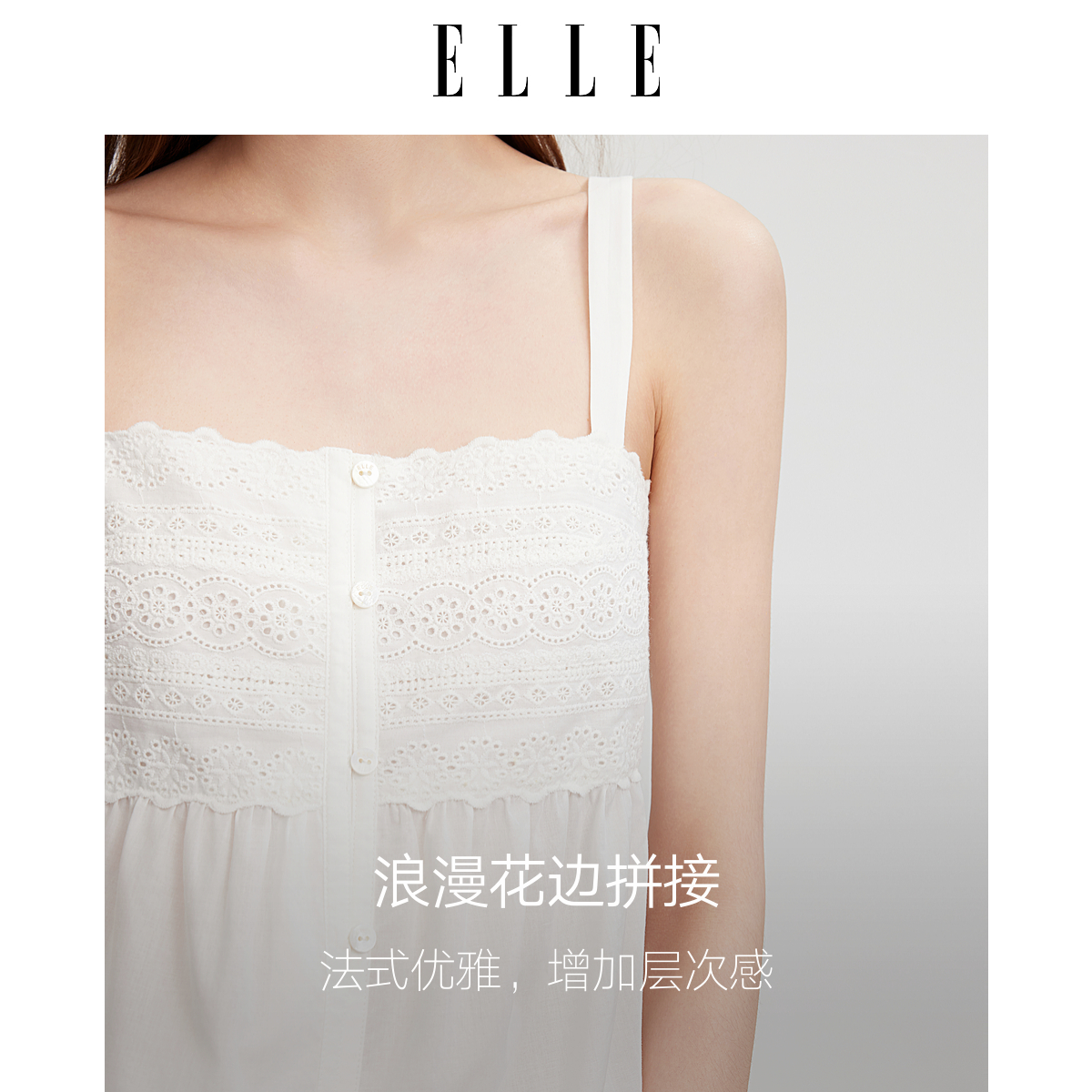 ELLE法式 花边拼接简约高级感睡衣上衣单件 纯棉吊带睡衣女2025新款