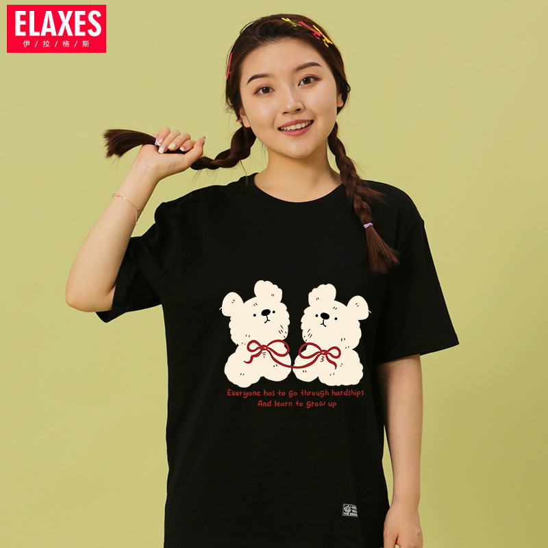 T恤女圆领纯棉休闲减龄百搭情侣装 小狗动画印花短袖 春季 2025新款