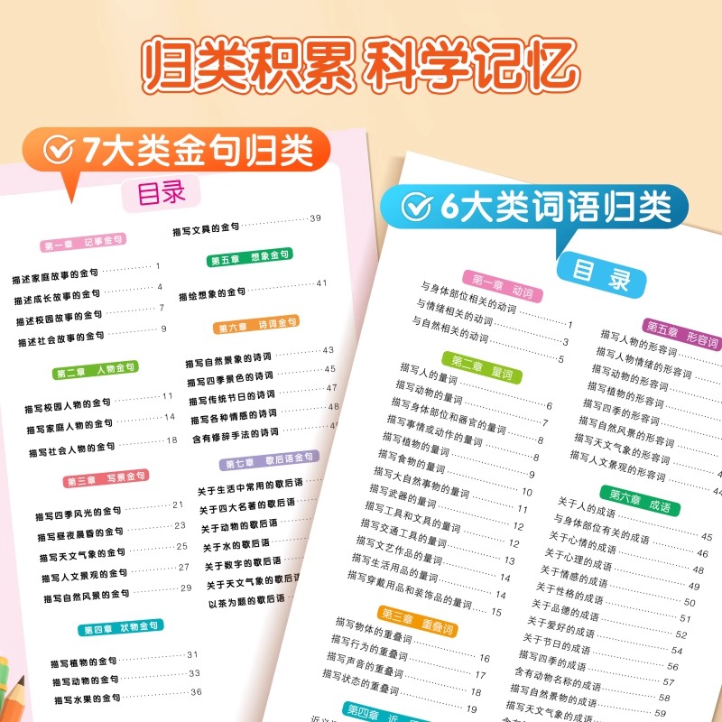 小学生词语积累作文金句归类大全一二三四五六年级好词好句好段优美句子素材积累重叠词量词四字成语训练作文必备写作方法技巧书籍