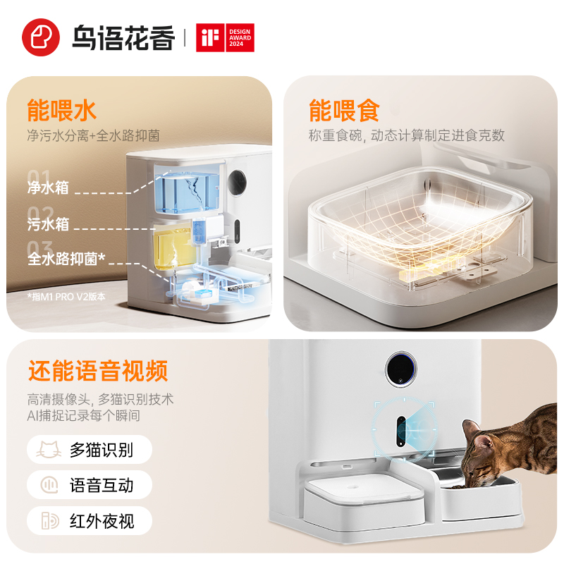 鸟语花香智能一体机自动喂食器猫宠物猫咪饮水喂食机 猫脸识别