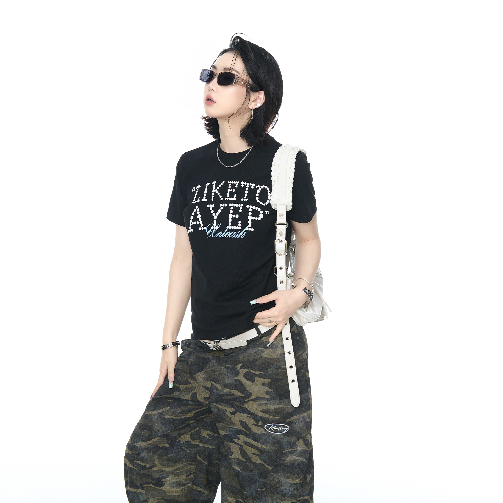 新款 T恤女ins辣妹风半袖 正肩短款 发泡印花短袖 上衣 修身 2025夏季