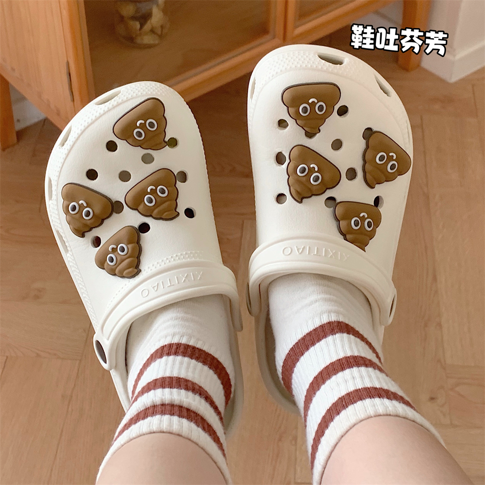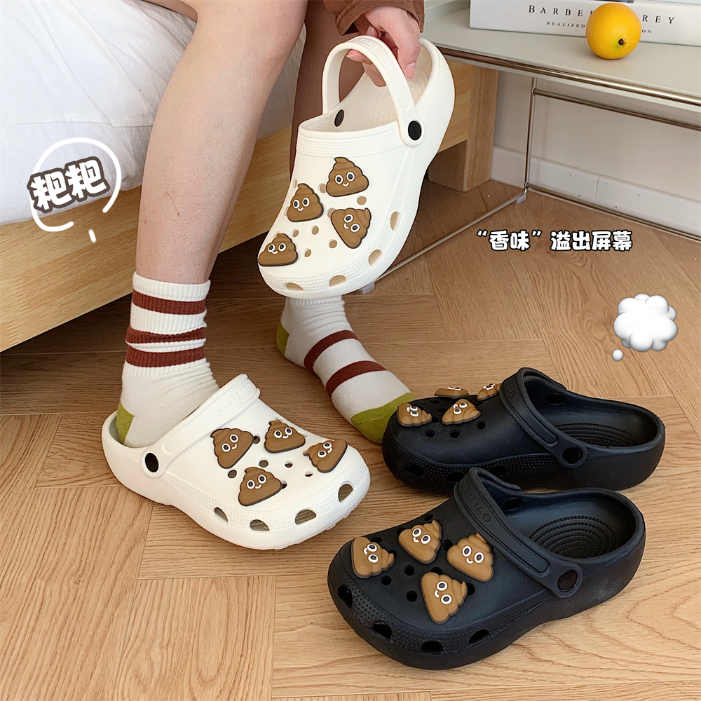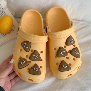 EVA洞洞鞋 夏季 丑萌搞怪粑粑情侣创意ins凉拖 男女趣味新款 细细条