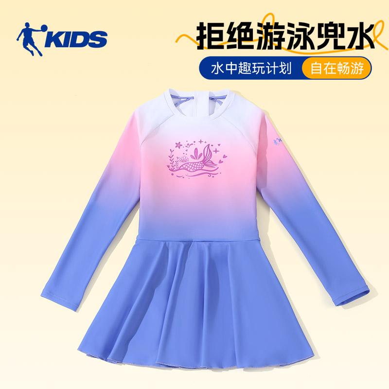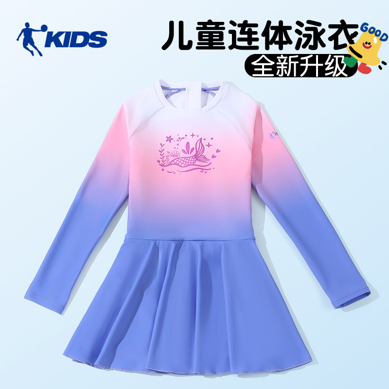 女款 防晒速干保守遮肚显瘦泳装 连体长袖 乔丹儿童泳衣女童2025新款