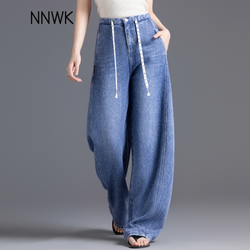 子秋冬 2025宽松垂感小个子直筒拖地裤 复古慵懒风阔腿牛仔裤 女秋季