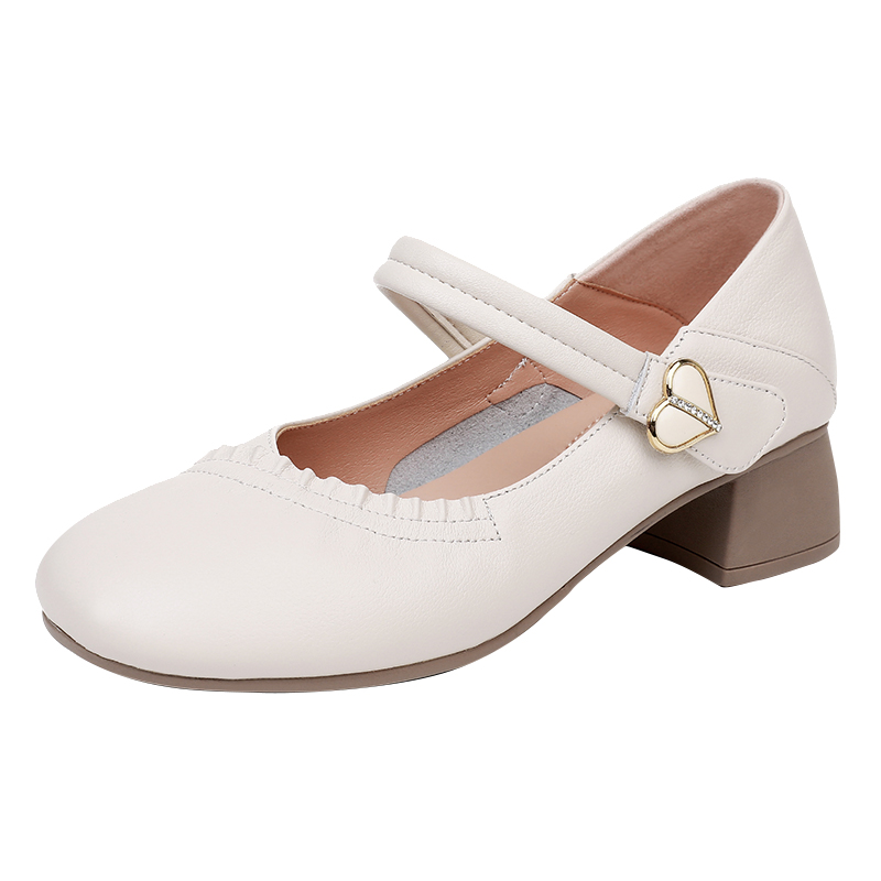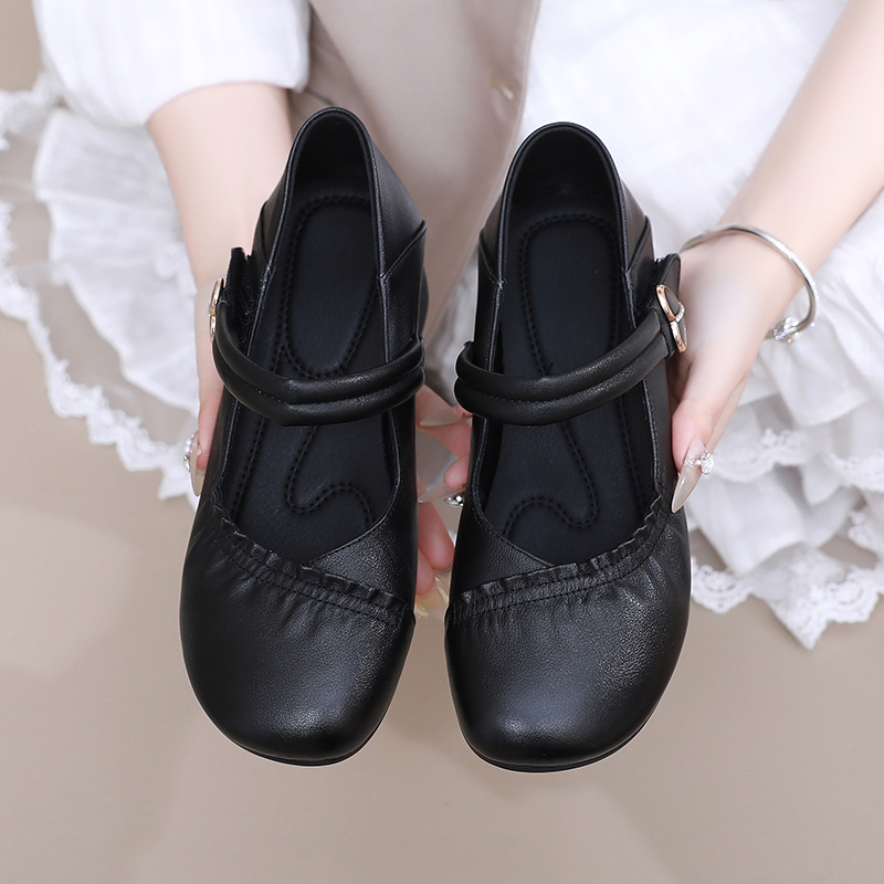 女2025新款 粗跟软底舒适百搭妈妈鞋 四季 大码 浅口单鞋 真皮玛丽珍鞋