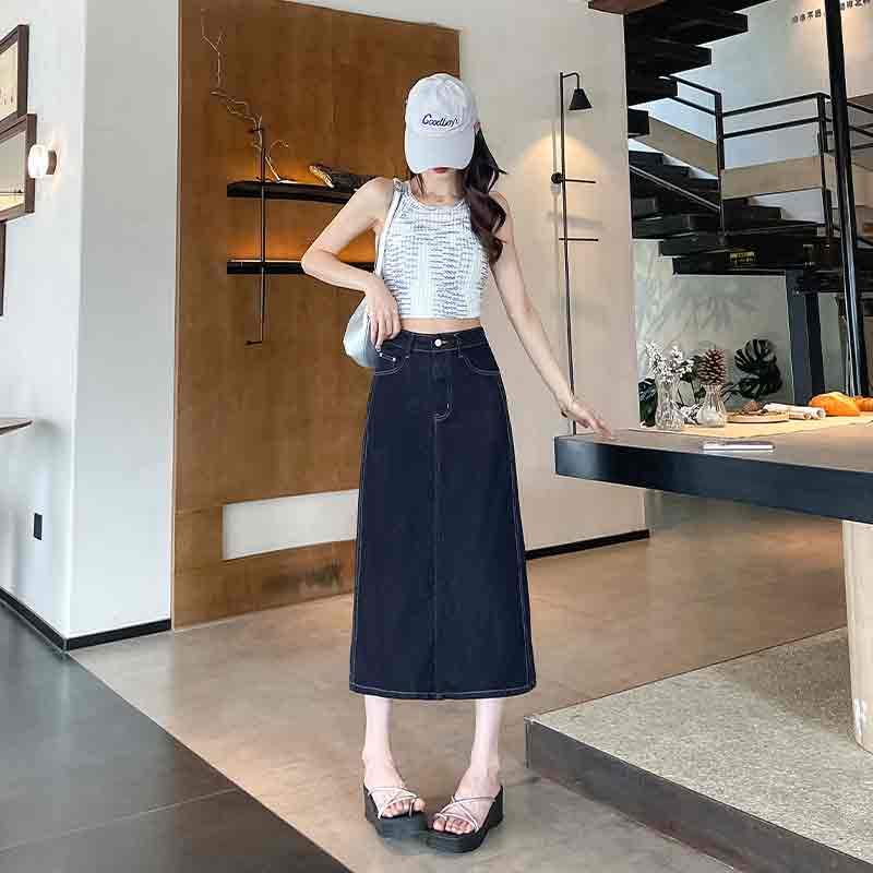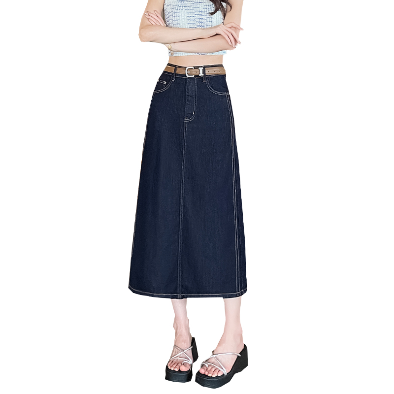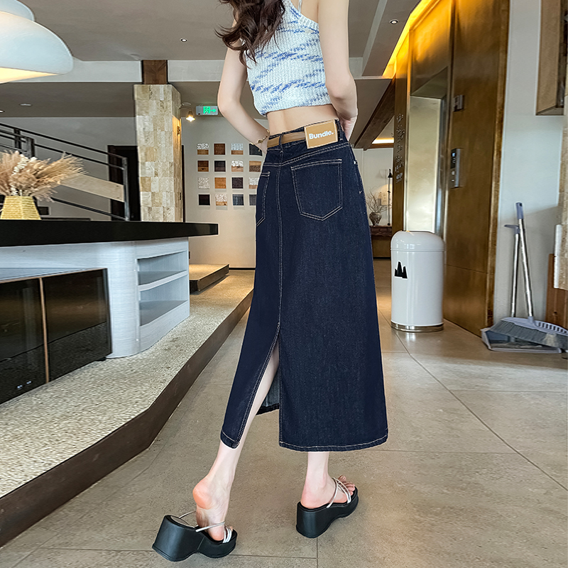 丹宁色牛仔半身裙子女2025年夏季 显瘦包臀裙后开叉a字中长裙 新款