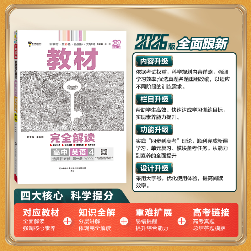高一英语配套新教材 王后雄学案教材完全解读 王后雄2026版 配外研版 高一 高中英语4选择性必修第一册