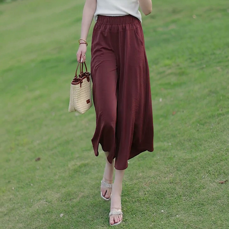 高腰显瘦宽松直筒小个子冰丝裙裤 八分阔腿裤 2025新款 薄款 夏 女夏季