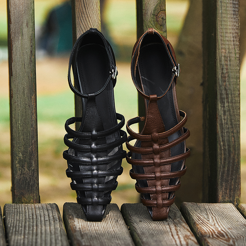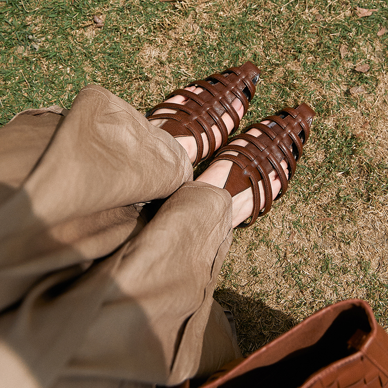 粗跟露趾罗马鞋 摩登中性罗马风镂空植鞣牛皮凉鞋 新款 开怀依足夏季