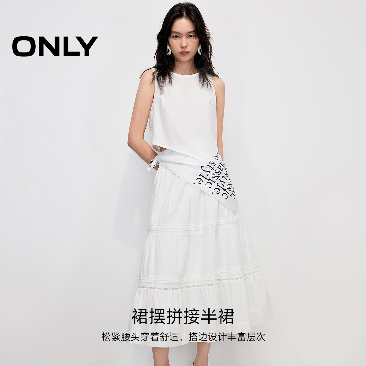 白色雪纺半身裙女中长款 A字伞裙大摆裙垂感百褶长裙子 2025夏新款