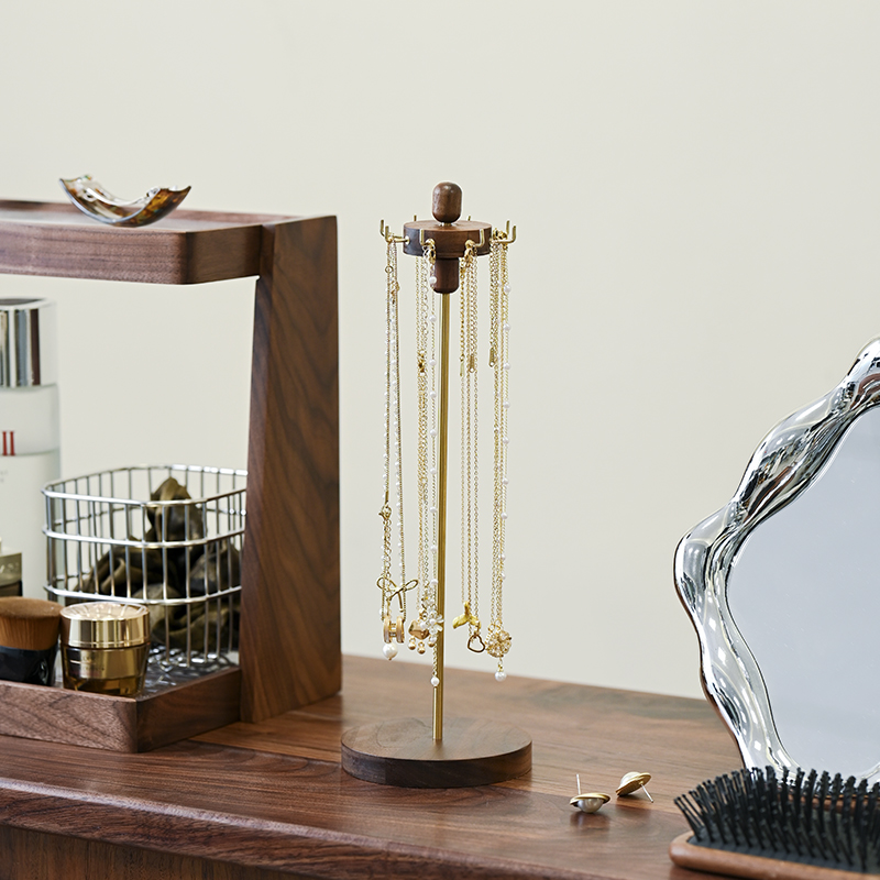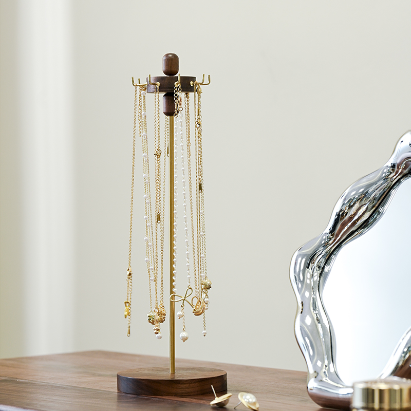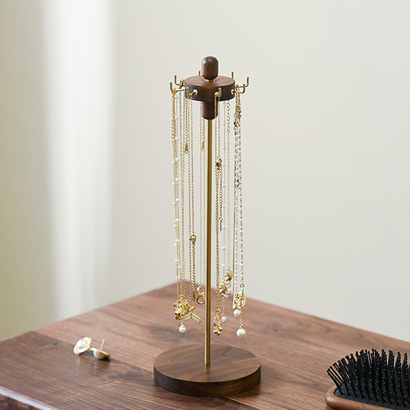 胡桃木首饰展示架可旋转实木饰品手串手链项链梳妆台收纳珠宝挂架