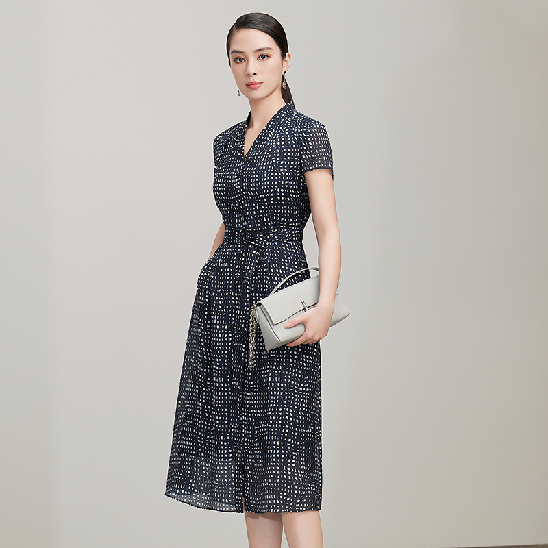 凉感中长裙 新款 森柔牛仔 森马牛仔连衣裙女收腰翻领港风2025夏季