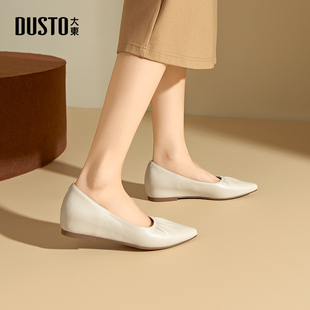 尖头单鞋 通勤内增高女鞋 女2025新款 女款 春秋浅口小皮鞋 大东dd法式
