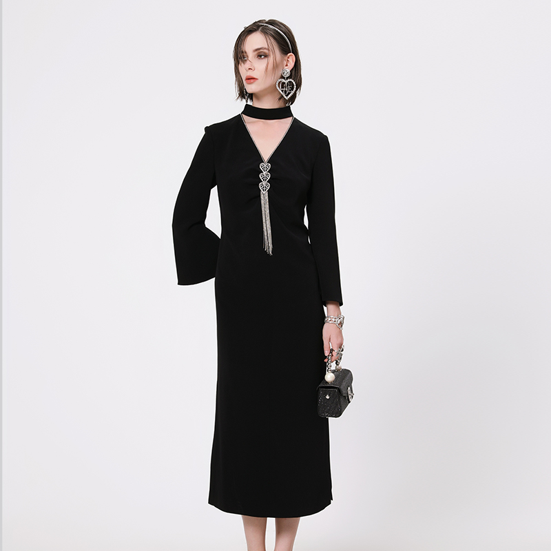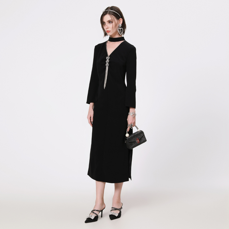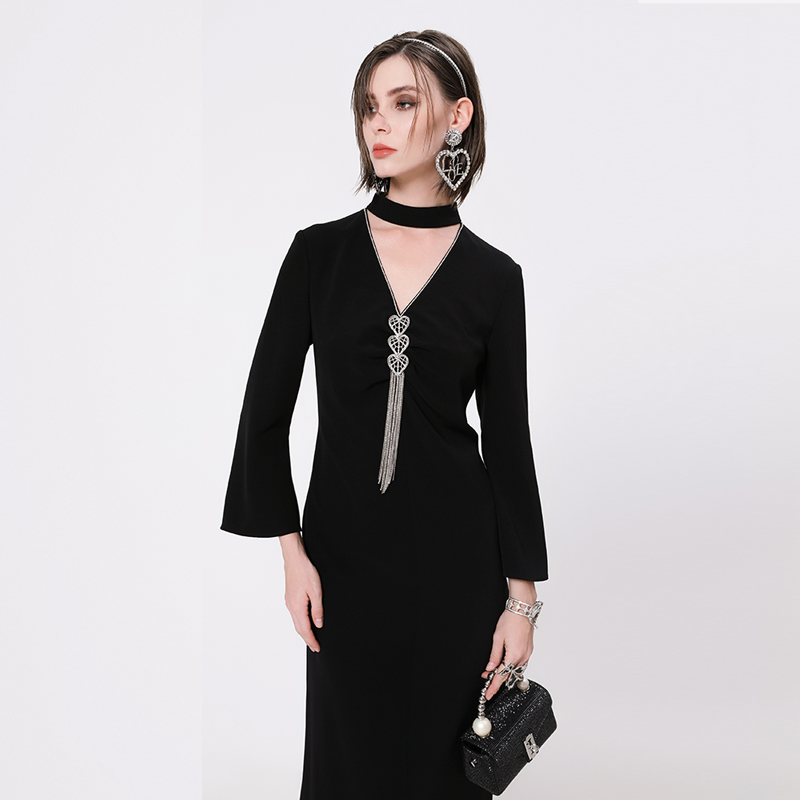 场合裙子气质小黑裙女秋冬 正式 黑色收腰连衣裙高级感2025秋季 新款