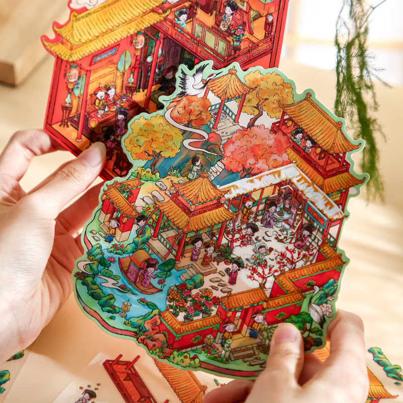 饰小屋大尺寸装 纸先生原创 创意原创diy趣味宫廷风贴纸手账装 浮生梦未央 饰立体造景贴纸 古风3D造景贴纸