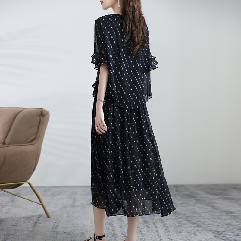 飘逸显瘦裙子夏季 气质法式 高端真丝连衣裙女桑蚕丝妈妈短袖 新款