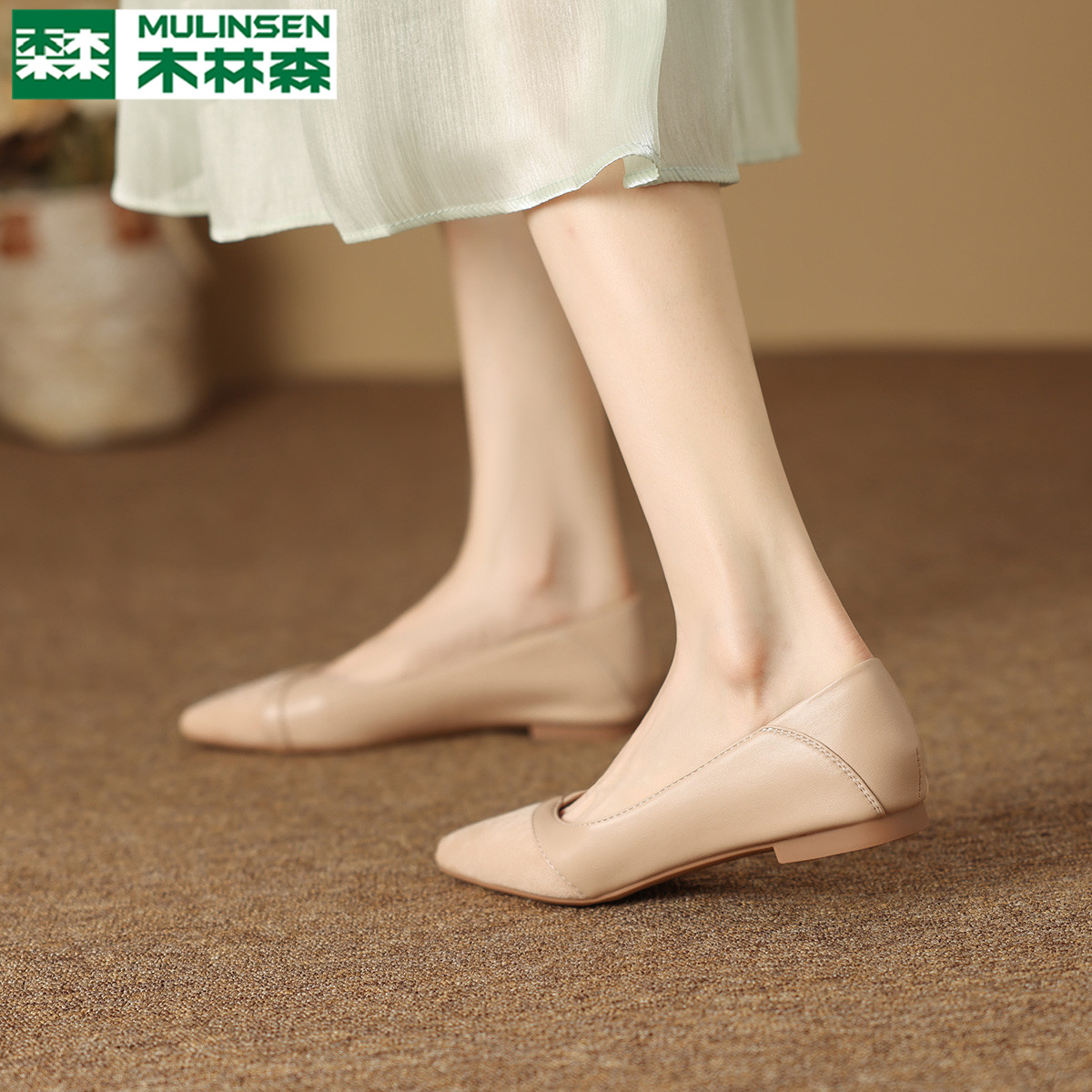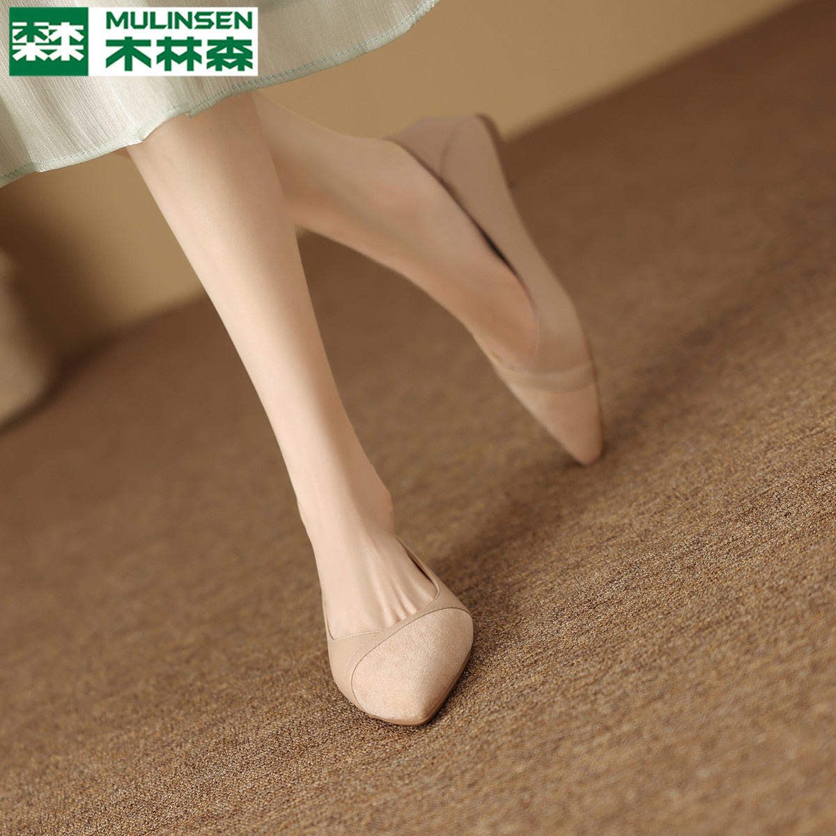 绝美气质通勤平底鞋 小个子内增高裸色方扣浅口单鞋 女2025春夏新款