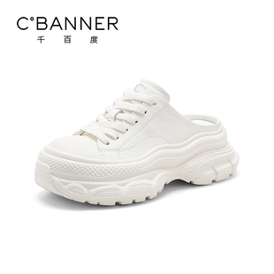百搭厚底增高皮面舒适轻便包头拖鞋 新款 女2025秋季 千百度休闲拖鞋