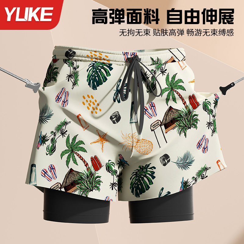 成人大码 双层防尴尬2025新款 海边游泳裤 男士 备 泳裤 专业温泉装 男款