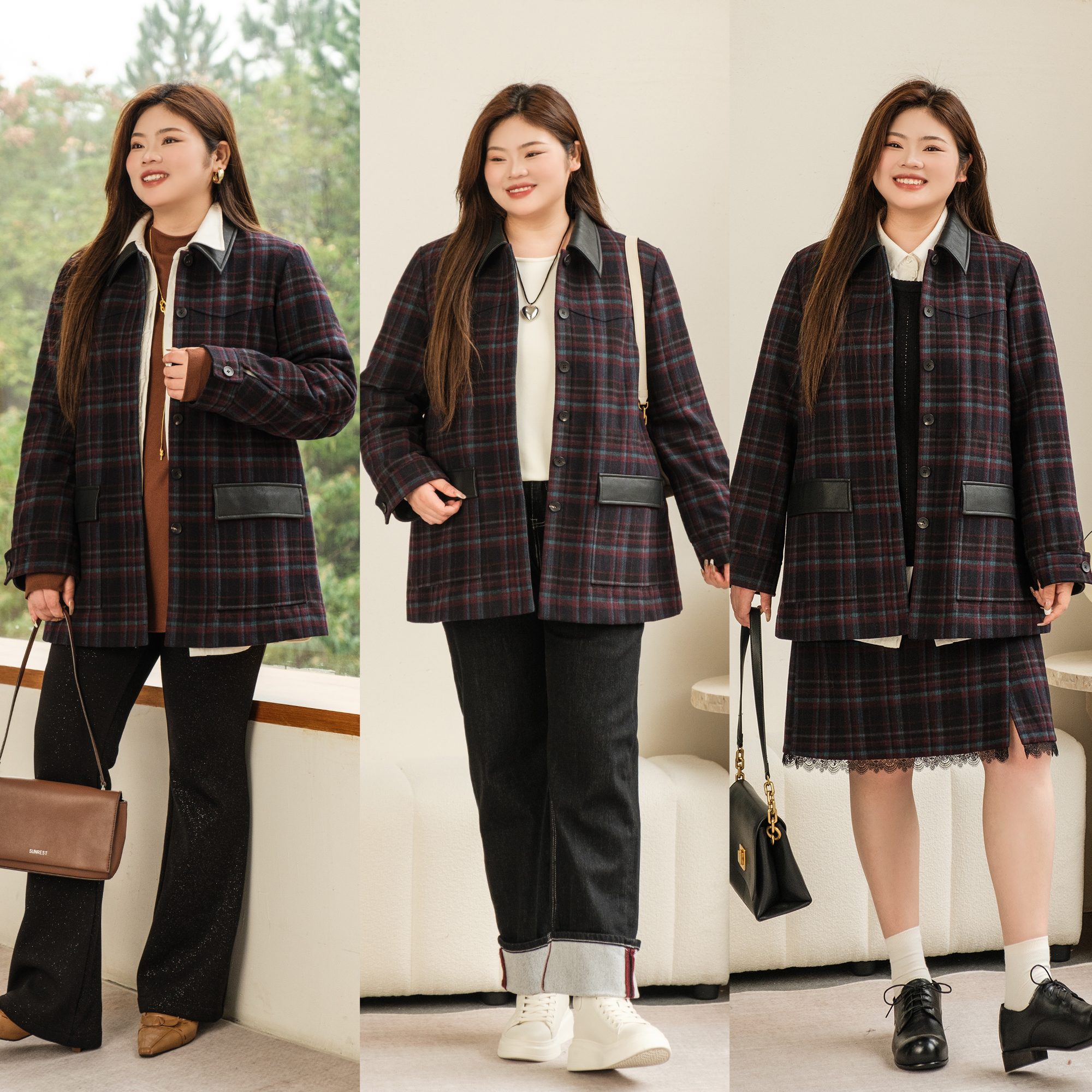 上衣男女 复古翻领夹克格子拼接短外套潮休闲工装 Achock官方店