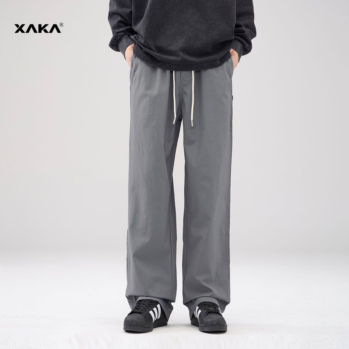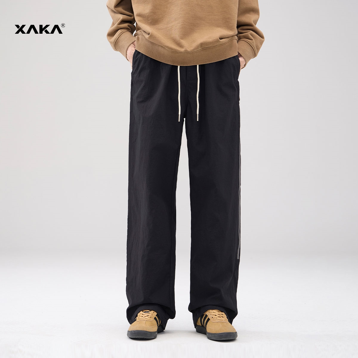 子 条纹黑色男潮流侧边设计宽松垂感长裤 XAKA美式 奥粒绒休闲直筒裤