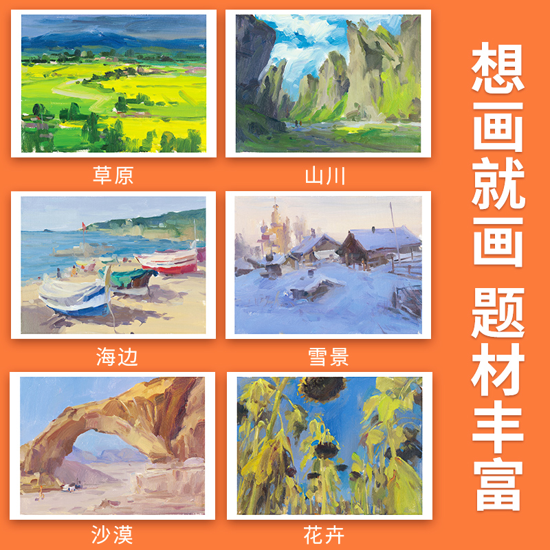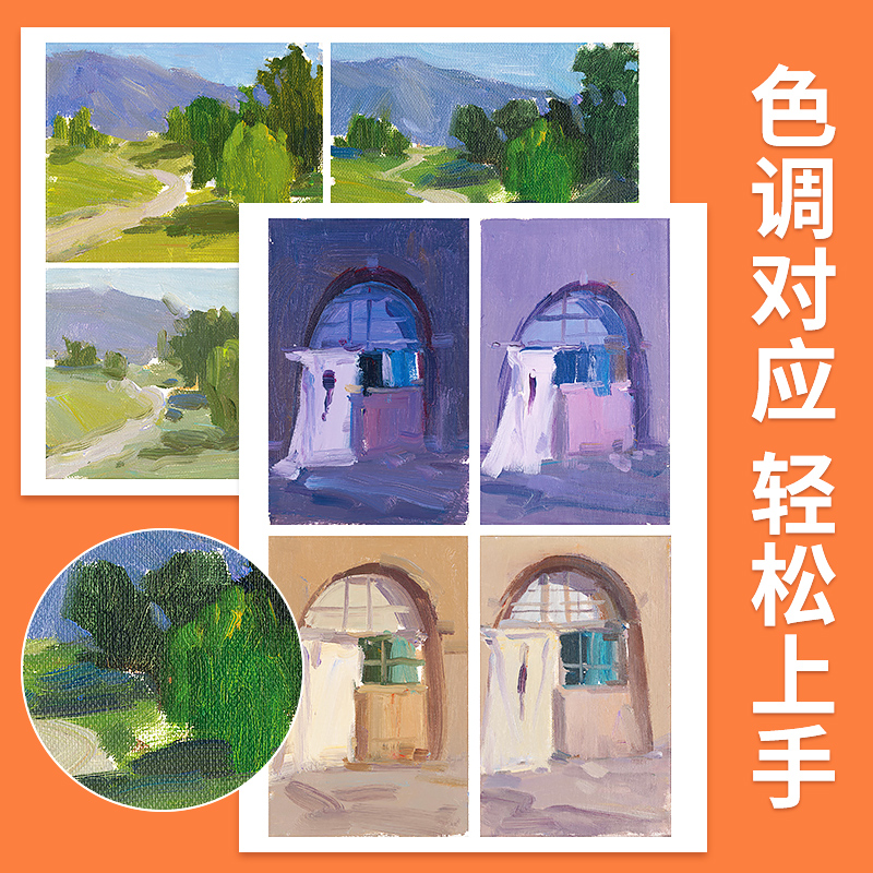 8开胡生亮色彩风景临摹卡色调对应到完整作品草原山川雪景沙漠花卉零基础临摹范本美术教学教程少儿中高考美术考试色彩风景临摹卡