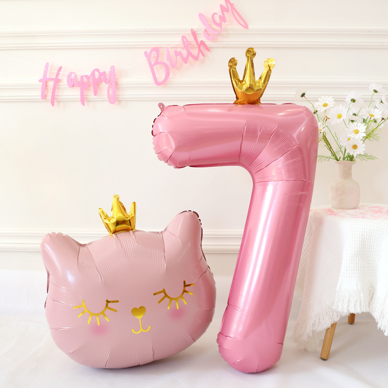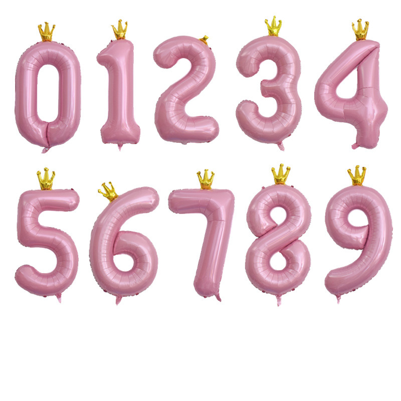 40寸大号粉色皇冠数字气球室内装 饰宝宝周岁生日派对铝膜场景布置
