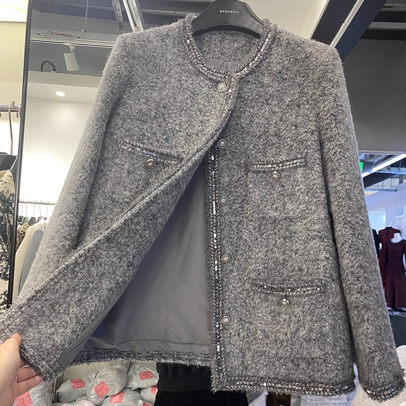 COCOBELLA静奢风珠片花纱毛呢外套短款 WL507 廓形小香风西装