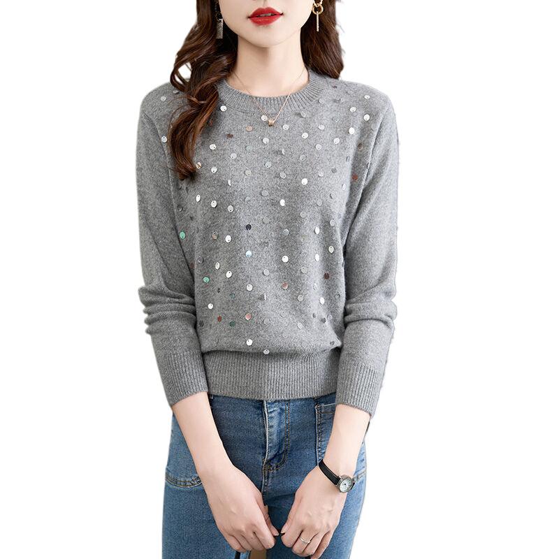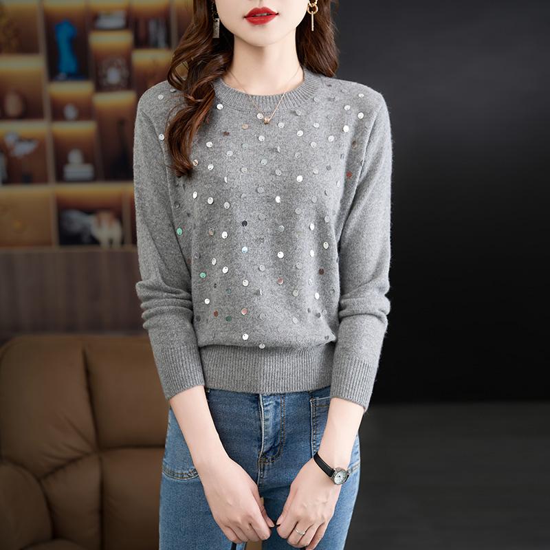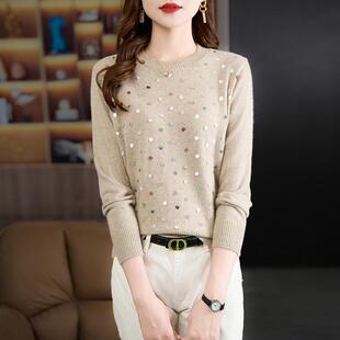 高级感上衣宽松打底针织衫 圆领100%纯山羊绒衫 女高端毛衣秋冬新款