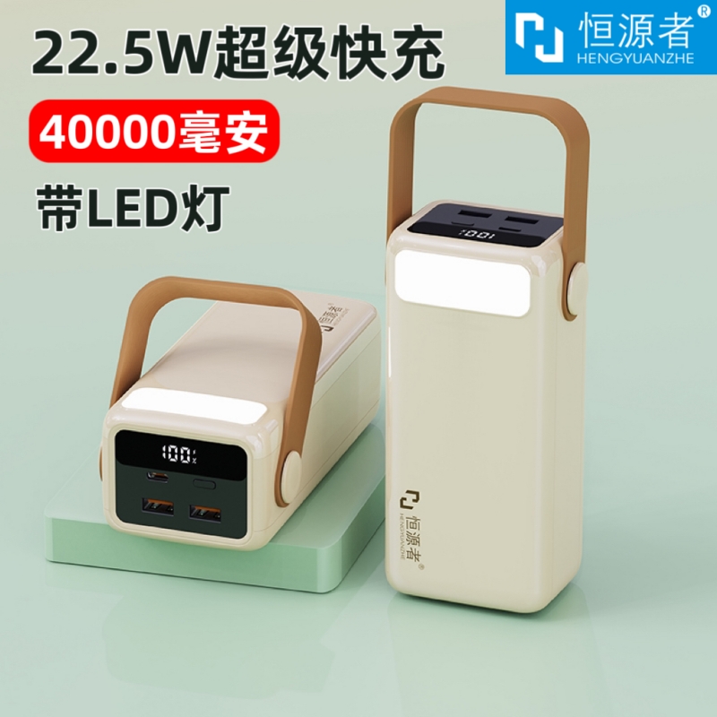 恒源者40000毫安超大容量充电宝带LED台灯22.5W超级快充户外露营夜钓宿舍摆摊移动电源华为苹果小米手机通用