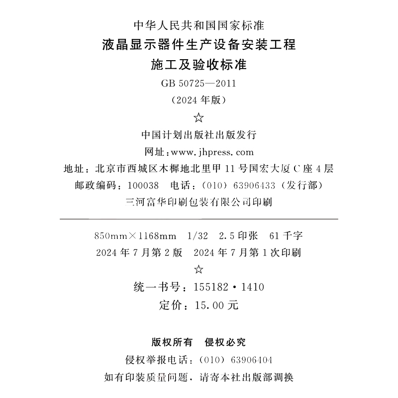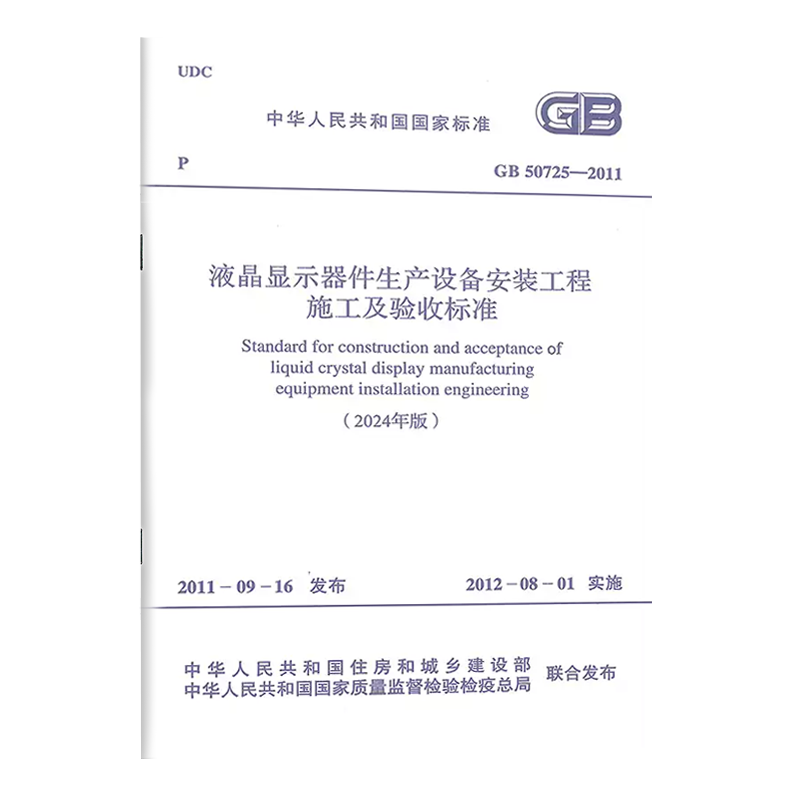 50725 2024年版 2011 工程施工及验收标准 液晶显示器件生产设备安装