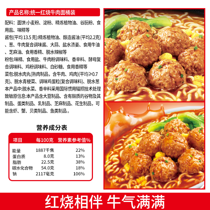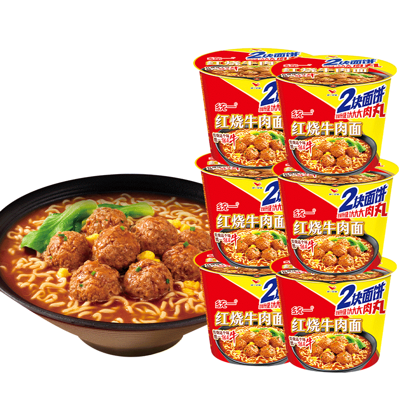 统一红烧牛肉面方便面来一桶大肉丸口味桶装 懒人夜宵宿舍泡面整箱