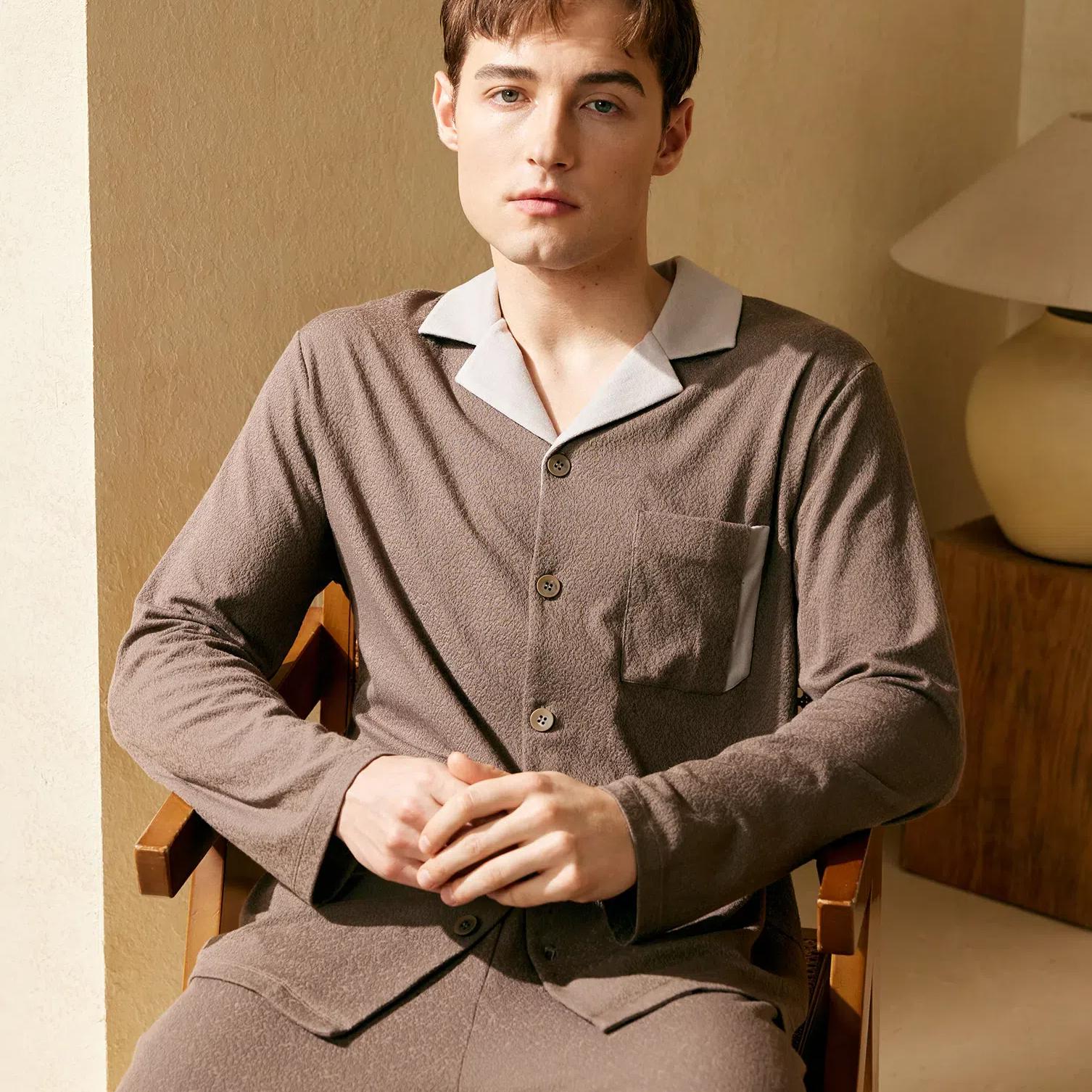 保暖家居服大码 睡衣秋冬薄绒睡衣套装 可外穿 男士 郁凡诗高级新款