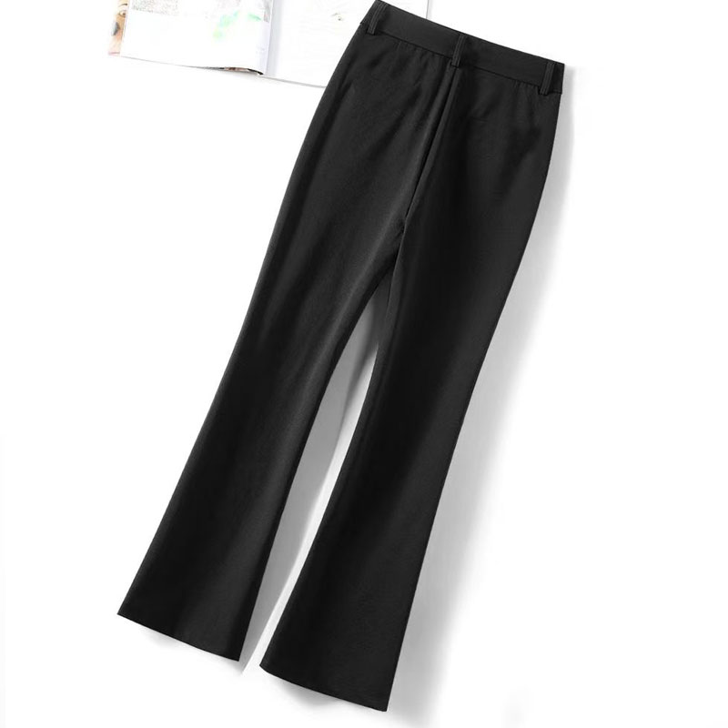 阔腿裤 职业工作西装 子 女春夏2025高腰显瘦垂感休闲大码 黑色微喇裤