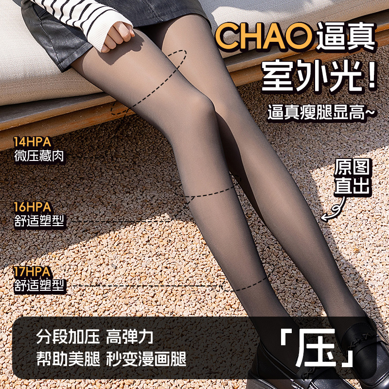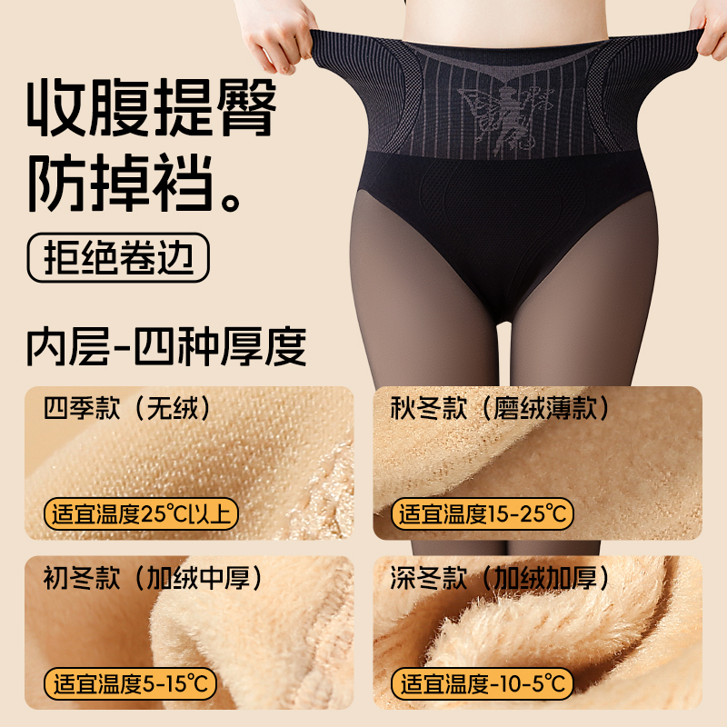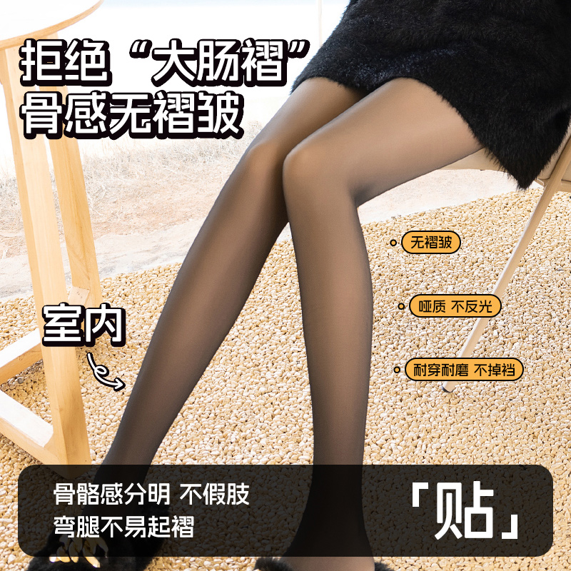 空姐灰色加绒黑丝袜女 打底裤 猫人灰透肤黑光腿神器秋冬季 2024新款