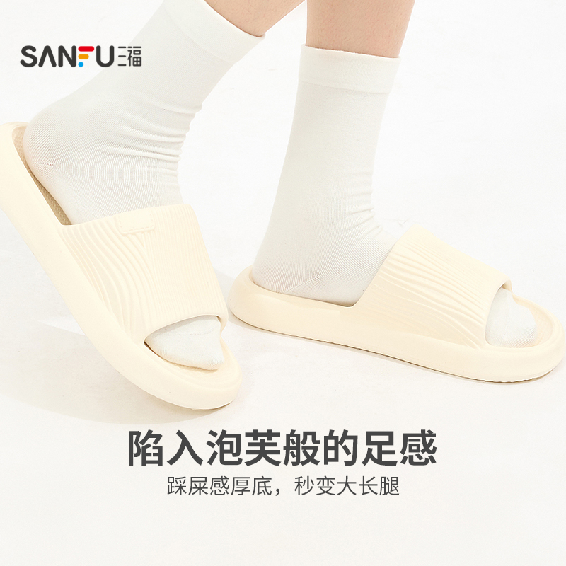 三福居家简约浴室一字拖 497489 生活日用创意净色家居拖鞋