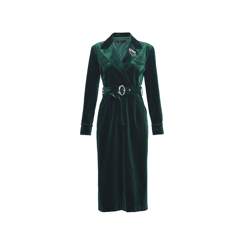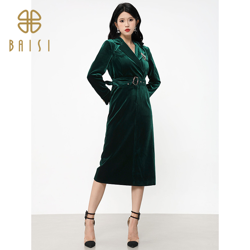 连衣裙女 收腰显瘦气质长袖 百丝洋气复古成熟翻领长裙2024冬季 新品
