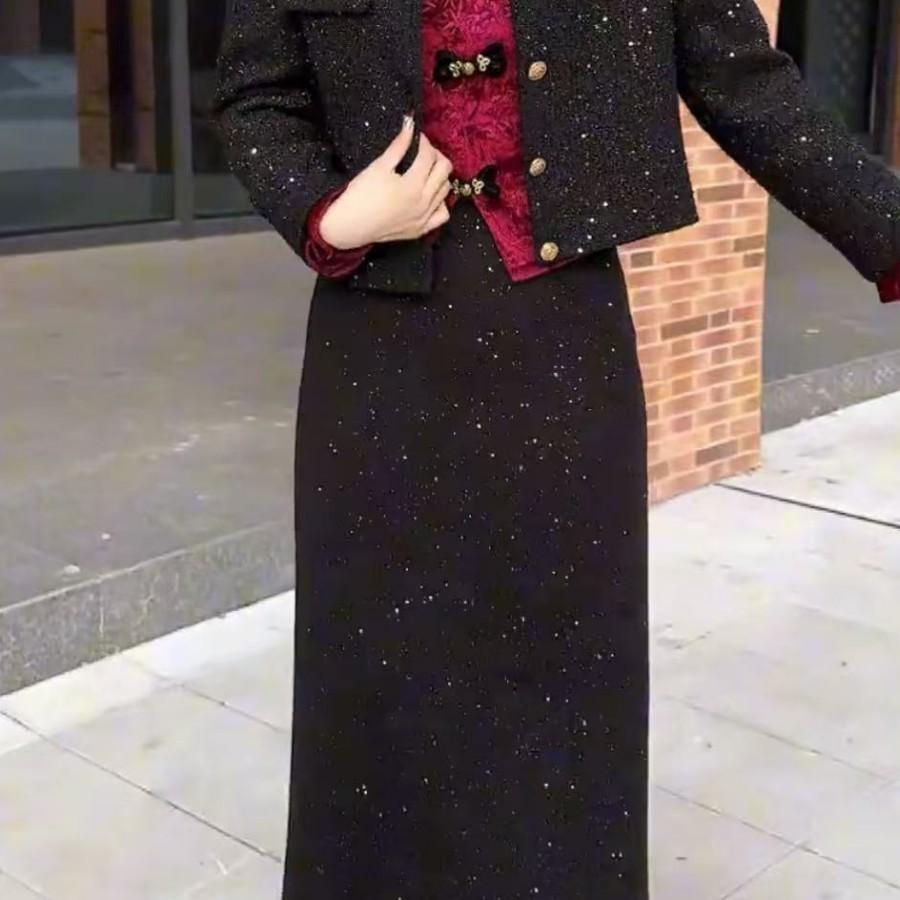 日系复古超好看半身裙子女士春秋装 小个子高腰显瘦夹棉A字裙 新款