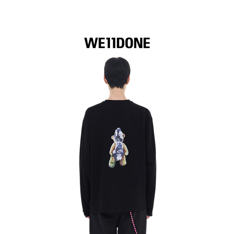 WE11DONE男女同款 T恤字母LOGO印花上衣街头感朋克 朋克泰迪熊长袖