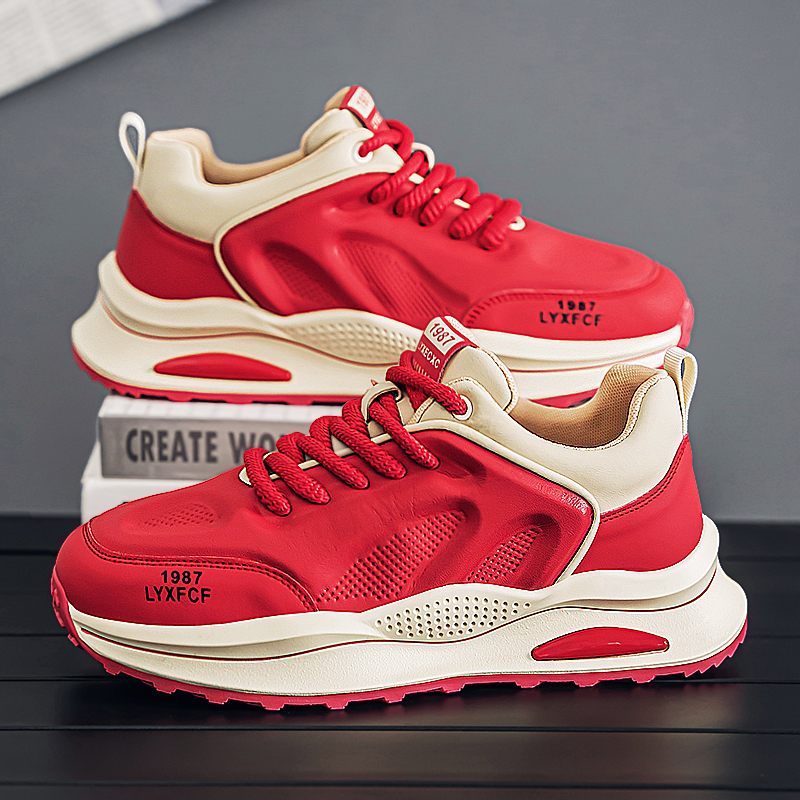 皮面防滑休闲青少年增高老爹潮鞋 运动厚底小白板鞋 秋季 欧洲站男鞋