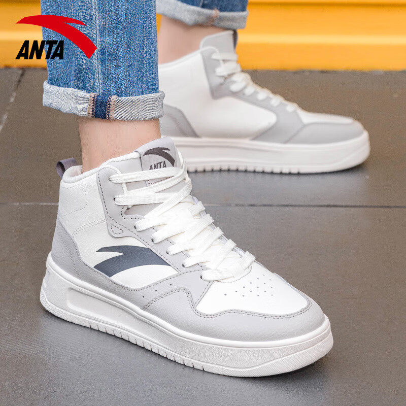 冬季 男2025官网旗舰新款 皮面防水板鞋 运动鞋 安踏男鞋 子男款 高帮鞋