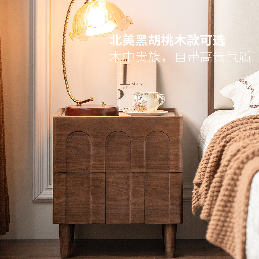 源氏木语百伦沙实木床头柜卧室法式 复古床边柜抽屉柜樱桃木收纳柜